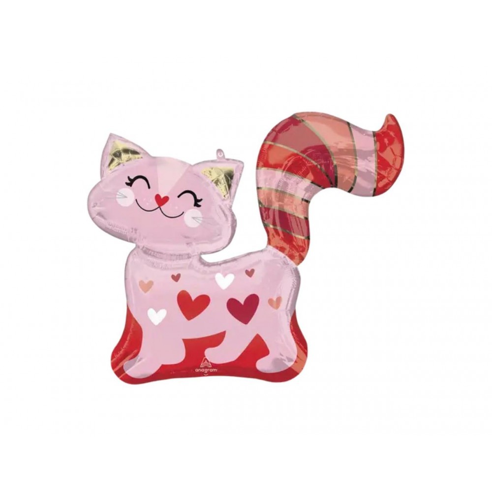Розовый котик в сердечках, (78 см)